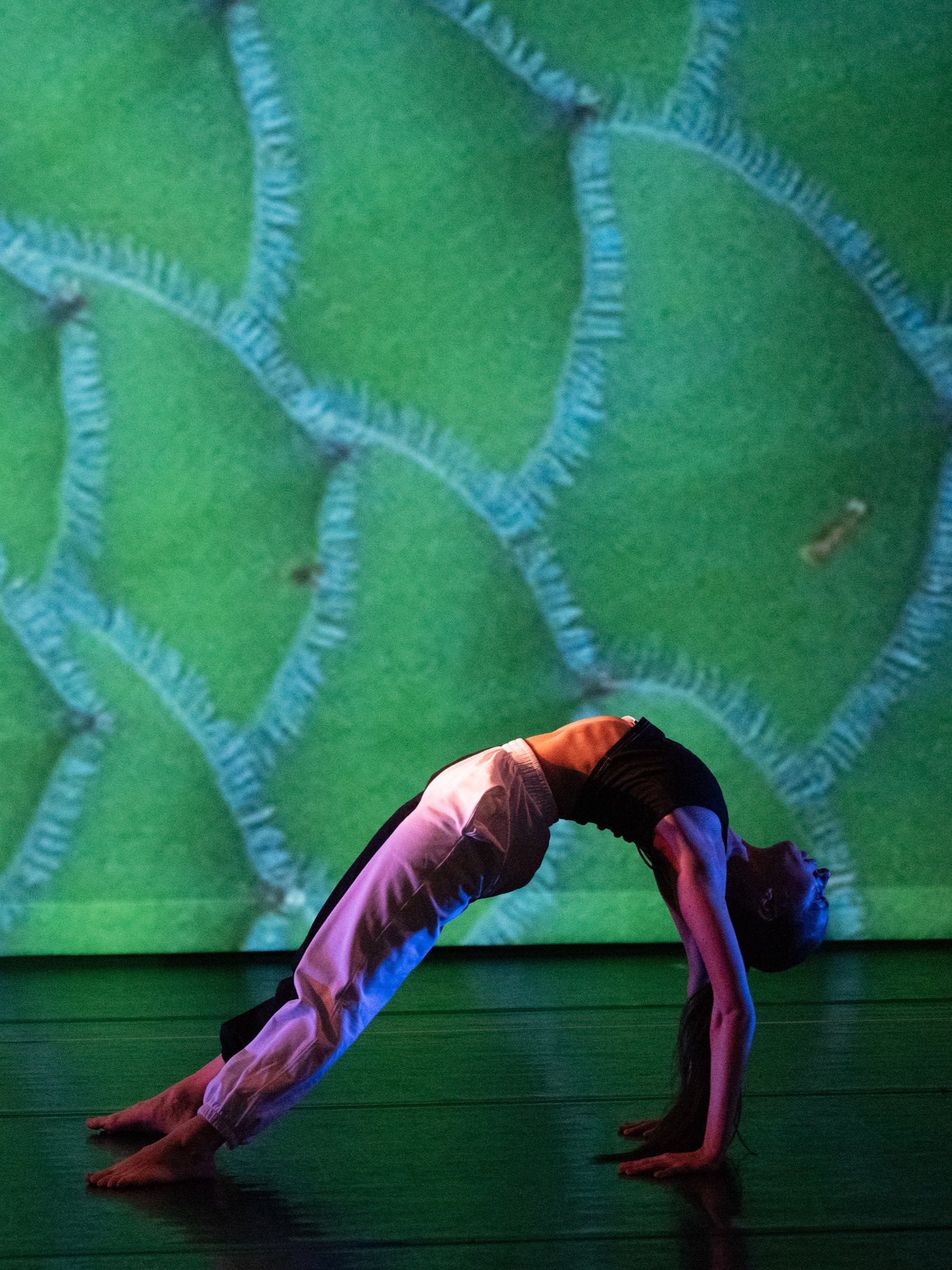 Pathways and Architecture is a multimedia dance performance, featuring video projections, original set design, and audience participation that explores 'oppositional' movement styles in response to a dichotomy in our identity: our bodies' asymmetrical nature coexists with our human desire to develop symmetrical systems. Our architectural design is unique and full of asymmetries, but we build machines, computers, and systems to create a symmetrical world. While these structures should serve our human needs and improve our lives, it often feels like we are trying to accommodate who we are to fit in these spaces. I aim to discover a possible balance between our natural selves and constructed reality, and find an answer to the everlasting question: how do we fit a square peg into a round hole?